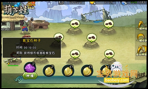 大家好,今天我们来聊一聊葫芦娃游戏中的农场系统。在我们完成单人第一章勇闯妖洞9即可开启农场,我们可以在空地上进行播种。