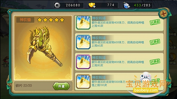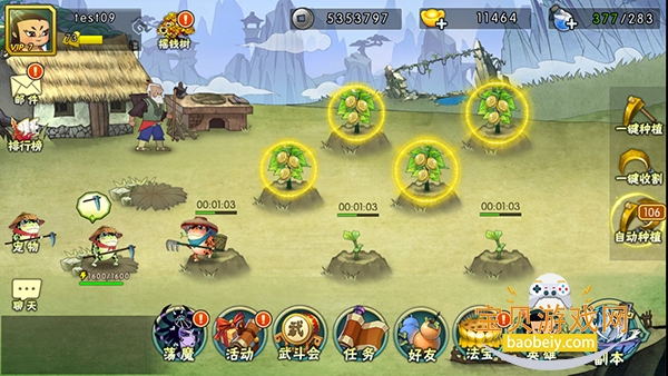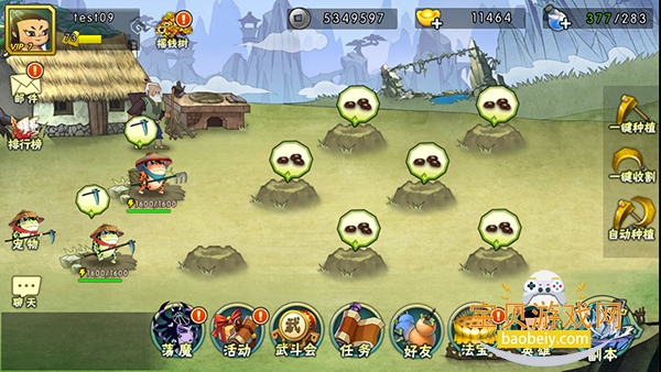 2、等到种子成长成熟之后,我们就可以收割获取相应的道具了。当然,在我们通关相应的副本之后,还会开启相当方便的一键种植和一键收割的功能呦。