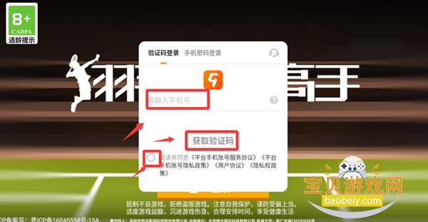 2、输入手机号码然后点击打√获取验证码。