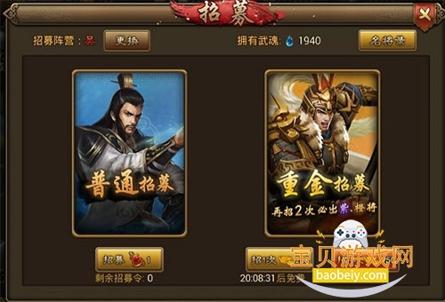 3、武将招募,号令天下