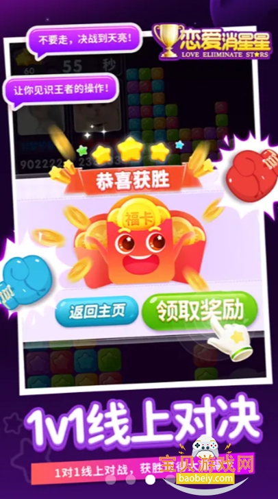 恋爱消星星红包版官方正版,一款真人消消乐手游应用,该游戏软件不限制年龄群体,游戏操作简单易上手,核心玩法涵盖单人闯关、真人在线实时对战,既保留消除游戏的解压趣味,又创新融入恋爱剧情、角色装扮与社交交友功能。玩家可通过消除关卡推进恋爱故事,解锁情书向心仪角色表白,还能自定义装扮角色打造专属风格,在轻松游戏的同时开启甜蜜恋爱之旅,兼顾休闲娱乐与社交互动双重体验。