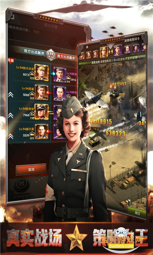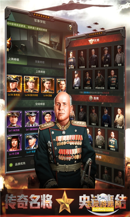 将领养成系统:收录隆美尔、巴顿等上百位二战名将,可通过升级、特训、晋升提升将领能力,解锁专属技能与兵种;装备系统支持个性化搭配,特定将领组合还能激活羁绊效应,强化部队战力。
