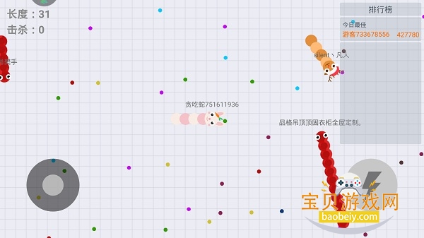 另外,当你围住别人时,小心你也会被别人围住,因为此时你也是缩成一团的状态,容易被其他的大蛇围住,所以在围杀他人时也要小心自己,有危险就放弃。