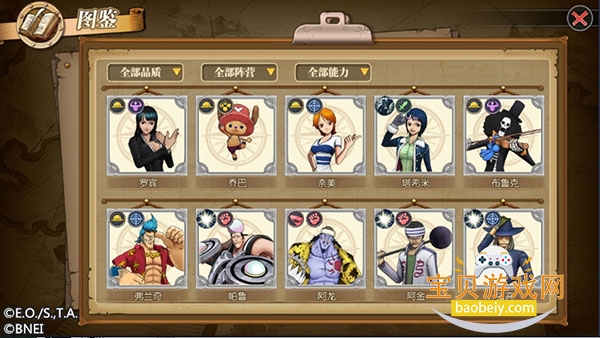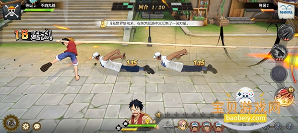 1.主线剧情玩法:跟随路飞的冒险足迹推进主线关卡,通关剧情副本可获取角色经验、金币与原作CG;部分关卡需搭配特定属性角色才能完美通关,解锁隐藏奖励。