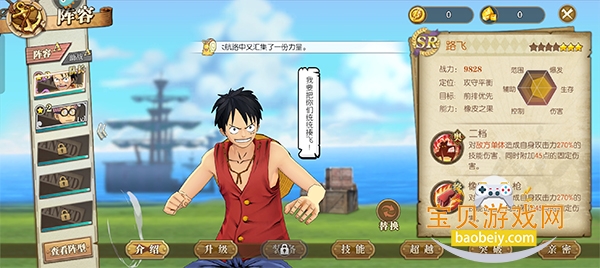 3.3D角色养成系统:收录路飞、索隆、山治等超百位原作角色,1:1还原人物外形与果实能力(如路飞的橡胶果实、艾斯的烧烧果实);支持角色升星、技能觉醒与装备打造,解锁专属奥义技能。