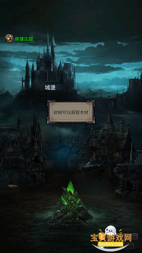 2、对完话,了解需要收集木材,这时候我返回主页点击中间的大树来收集。
