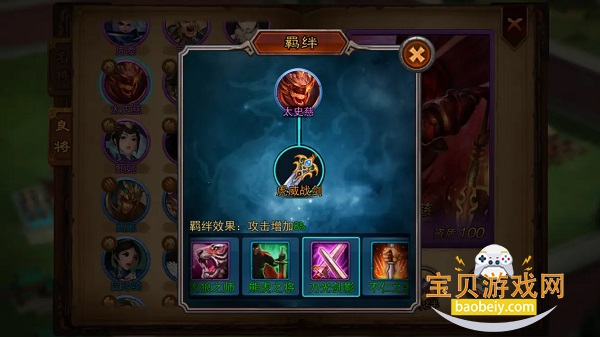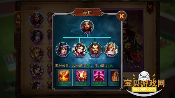 特点:羁绊组合加成也很高,要求相对低,只需要两个将领便可达成,属于防御型羁绊。