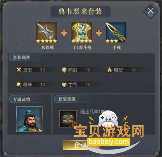 典韦恶来套装:双铁戟+白虎斗袍+手戟