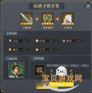 陆逊才俊套装:白虹剑+督军战甲+白鸽马