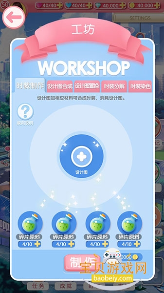 (1)时装制作:工坊中可以消耗设计图,制作出对应的美丽时装。