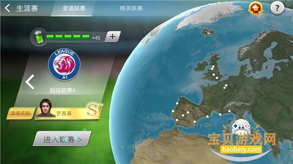 生涯赛为游戏主线任务,分为普通联赛和精英联赛两种难度