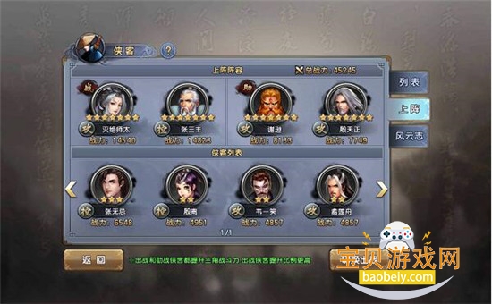 5、侠客系统:在武侠的世界里,谁都想和江湖名人面对面侃大山,和强力的大侠手牵手下副本。侠客按技能类型分为攻击型侠客,防御型侠客,辅助型侠客,控制型侠客;而按攻击类型的话,则分为内功类型和外功类型。