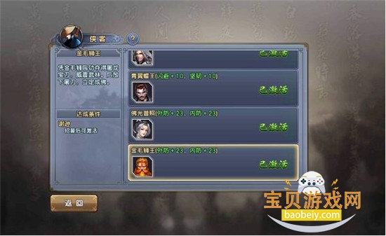 玩家获取到侠客后,即可激活侠客对应的风云志。在风云志中,玩家可以查看到所获得的侠客给自己带来的属性加成效果