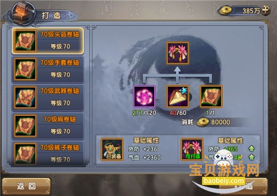 通过使用卷轴打造的装备也是获取装备的主要方式,装备打造需要对应的卷轴、紫色金属、橙装碎片,这些均可通过熔炼和每日活动获得
