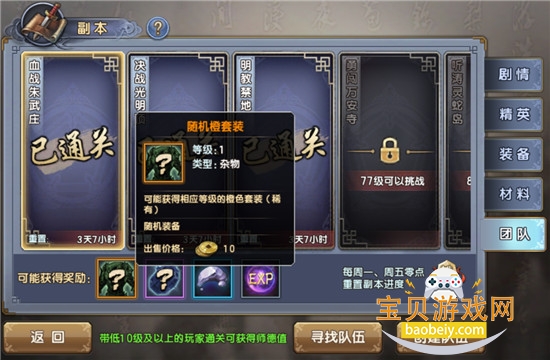 7、秘境系统:秘境是为玩家提供专门的挂机场景,玩家可以通过单人挑战或者组队挑战进入秘境场景内,挂机刷取角色经验。目前《倚天屠龙记》中的秘境分为两个场景,玩家可以通过衡量自身的实力选择不同难度的场景进行挂机挑战。