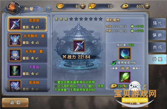 除此之外,60级开放的千机坊,也是合成装备的场所,玩家通过野外采集对应的合成材料随机合成不同品质装备(据说使用铸神玉会大幅度提升合成橙装概率)