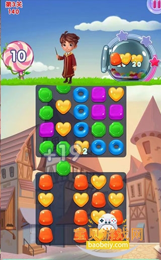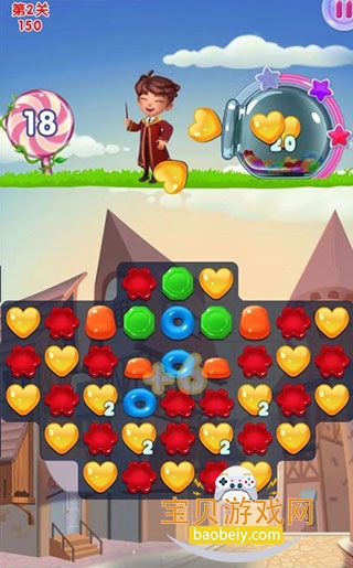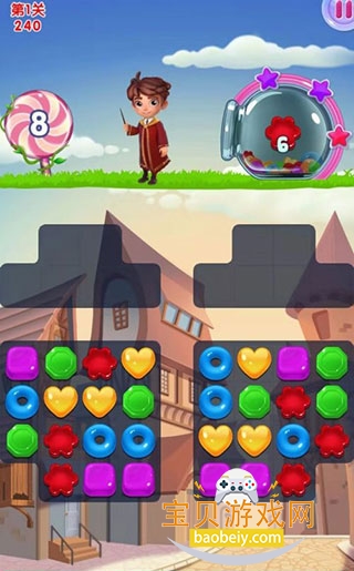 1、三个颜色相同的糖果连在一起就可以收集,这就是魔法的力量,每个关卡都有收集的目标,完成目标就可通关下一个关卡