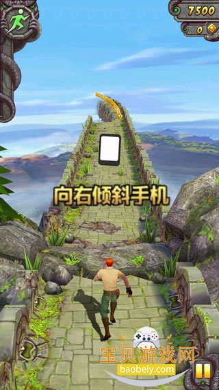 4、遇到吊绳跳起即可,可以左右晃动手机使主人公左右倾斜身体