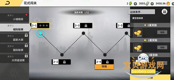每一个小关卡最高3星,最低1星,每多一个星星,都会有新的奖励。入球和花式都有分数,分数达到标准之后即可获得星星。