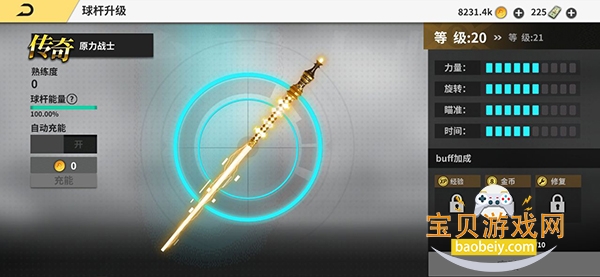 4、球杆维修说明:玩家每次出杆会减少球杆能量1点,球杆能量为0的时候,必须维修,否则球杆属性会减少为球杆初始属性的50%