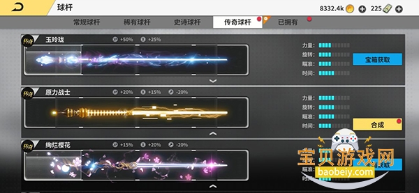 1、球杆分为5个品质,分别为B,A,S,SS,SSS(对应的中文:普通,精致,稀有,史诗,传奇);通过碎片合成的消耗分别为:5,5,5,8,8。其中SSS级球杆分为4个部位,每个部位至少拥有2个碎片才能合成