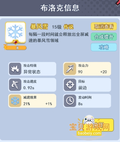 暴风雪布洛克是这套阵容中唯一一个传说布洛克,每隔8秒就会释放全屏减速的暴风雪领域。