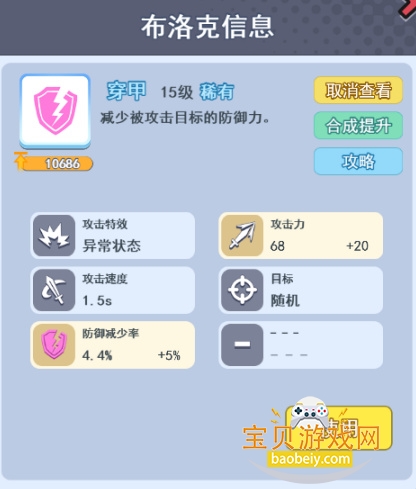 护盾布洛克,传说品质,每个一段时间对一个随机布洛克释放护盾,护盾可抵挡一次法术效果,召唤和合成也会触发召唤护盾效果(通过下一季荣耀战令【荣耀之盾】获取)