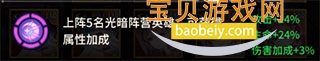 上阵光环:上阵4名同阵营,攻击加12%,生命加16.5%