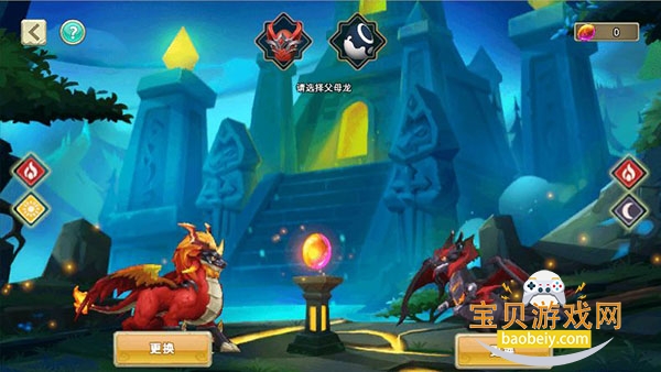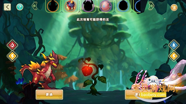 在培育界面的左右两侧会分别显示两只龙的属性,上方会显示出这对组合之下可能会获得的龙蛋类型。图鉴已经收集的龙蛋会直接显示龙蛋样式,而未解锁的龙蛋则显示为黑色剪影。