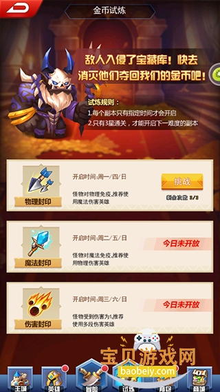 魔法封印:每周二、五、七开启,怪物对魔法免疫,推荐使用物理伤害的英雄