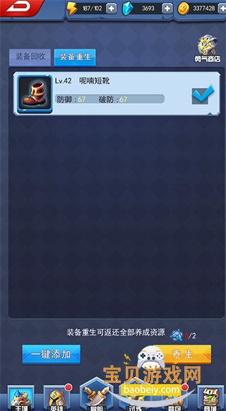 装备回收可以回收装备,回收装备之后可以获得相应数量的金币和勇气币。同时装备重生可以通过消耗装备重生石将已培养的装备进行回收返还全部的养成资源。