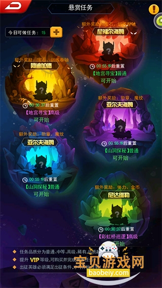 任务品质分为普通、中等、高级、稀有,品质越高奖励多!