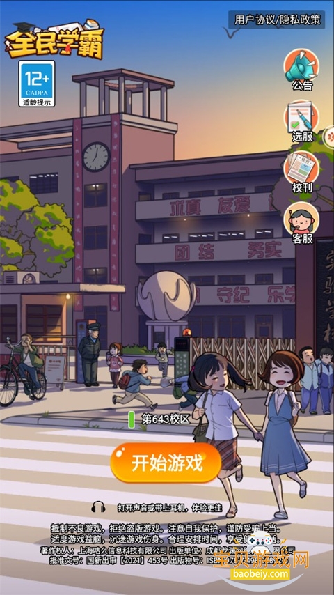 1.清新沉浸的校园氛围:采用明亮柔和的卡通画风,教室桌椅、操场跑道、图书馆书架等场景细节还原校园生活;师生配音各具特色,学霸的沉稳、学渣的俏皮、老师的亲切都表现得淋漓尽致,搭配轻快背景音乐,代入感拉满。