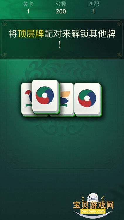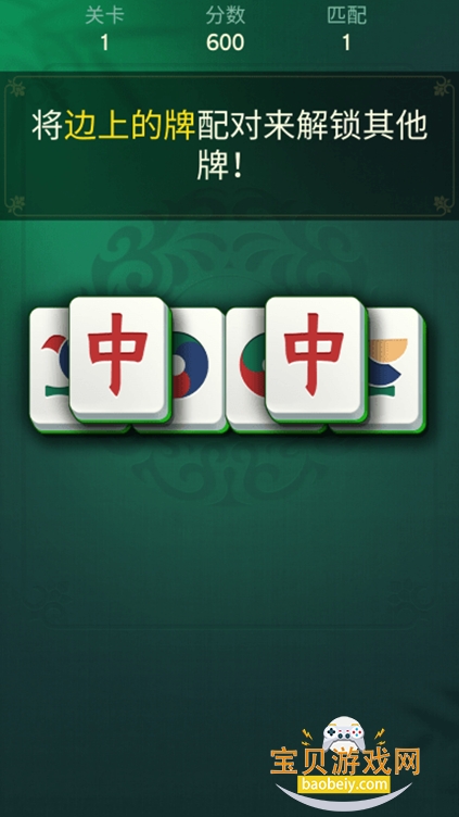 您的目标是匹配未被隐藏或阻挡的瓷砖。将边上的牌配对来解锁其他的牌。