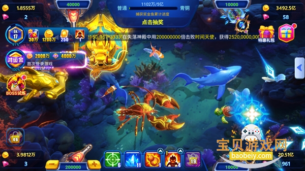 炮台是游戏里最重要的道具,相对来说捕鱼时使用的倍率也是相当重要的,那么在进行游戏的时候,我们要学会根据不同的鱼类、BOSS来选择不同的炮倍。比如在刚进入渔场的时候,BOSS如果还没出现,我们可以切换成低倍炮,捕抓小鱼热热身,节省金币,等待BOSS出现之后,再切换成高倍,实现捕鱼奖励最大化,从而在游戏中获得更多的金币。