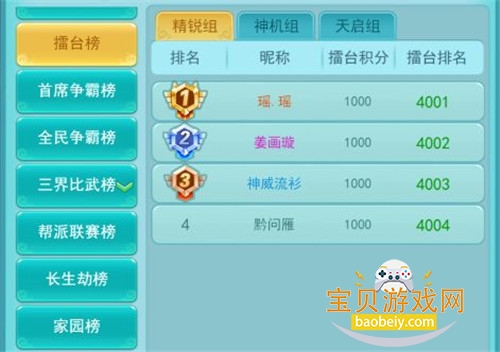 调整之后我们会先根据少侠等级划分为:精锐组、神机组、天启组;再根据少侠排名积分的高低进行排名;