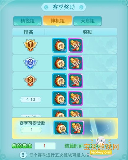 少侠在此处不仅可以查看各组别不同排名对应的赛季奖励之外,还可以查看本赛季奖励的结算时间、少侠目前排名情况等等。