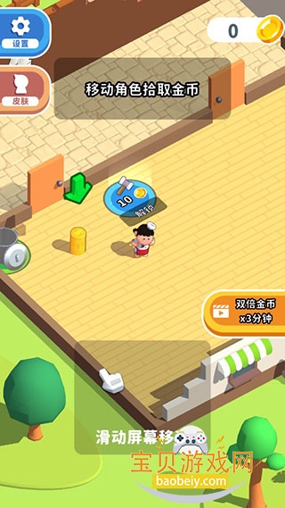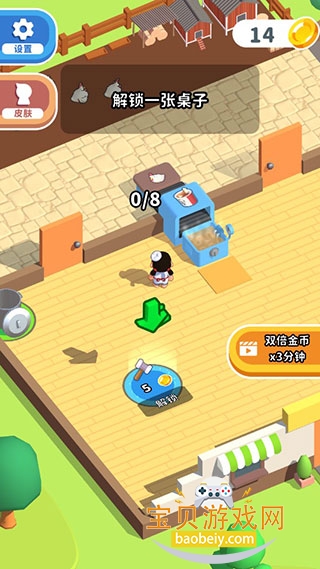 1、打开游戏,我们来到一家餐厅,旁边还有一些金币,我们移动角色来拾取金币。