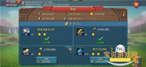 3、王国的资源生产永远是杯水车薪,提高资源采集能力就变得十分必要,士兵研发速度、资源采集速度、军团负重能力的投入都是一劳永逸的。