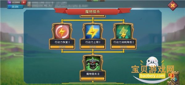 其次,看自身单产什么资源,选择增加该资源生产的英雄进行进阶,比如我单产铁,所以先升级了愤怒和猎手。
