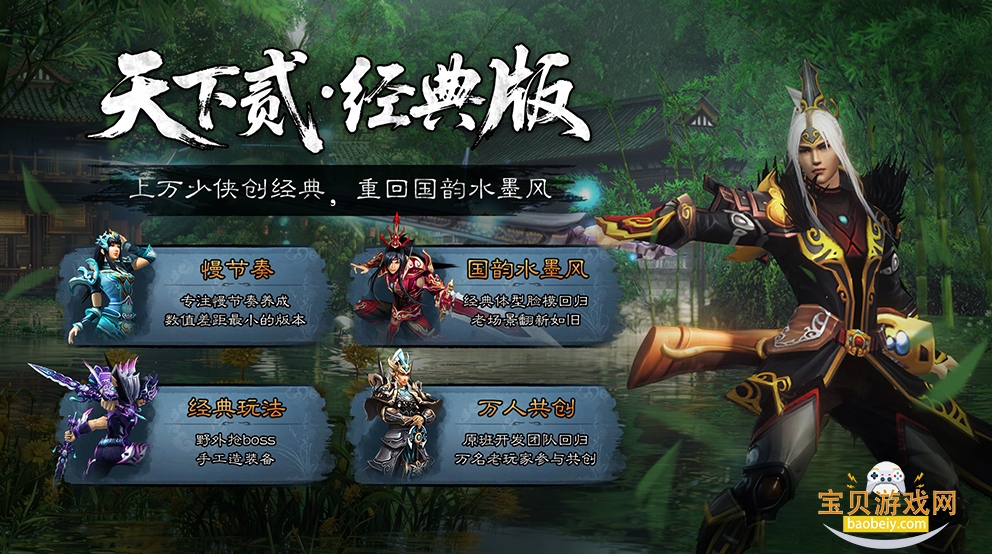 回归初心,重塑经典。基于2008-2011年版本的天下贰的设计的《天下贰·经典版》即将登场,带你重回那个国韵水墨时代。专注慢节奏养成,减少复杂的玩法系统,让你回归角色养成的本真乐趣;老玩家们心心念念的经典国韵水墨风、经典玩法也会随之回归……这是一次天下与少侠的共创之旅!