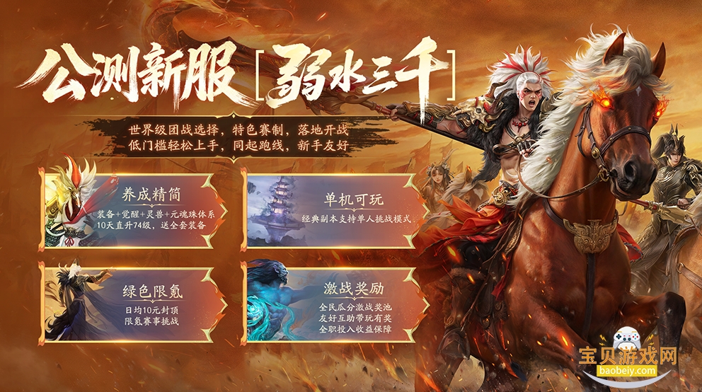 年度服【弱水三千】,老朋友回归天下的最佳首选!养成系统极度精简,回归战斗本源,大规模扩容赛季幻化元魂珠系统、全面优化的一步到位系统让你轻松上手、养成无忧,落地即参加世界级团战!经典副本支持单人挑战模式,【通幽秘境】与【天阶秘境】两大专属的单人挑战副本体系让独行大荒的少侠同样精彩。启动网易游戏史上最严格的充值防沉迷系统,打造一个可以凭实力、策略和热血说话的公平、绿色世界!更有全民可瓜分的丰厚激战奖励为大家带来实实在在的收益,不仅能玩还能赚~