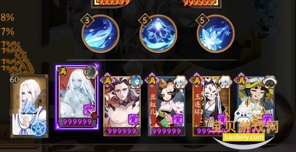 2、第一套阵容使用晴明+蝉冰雪女+酒吞童子+丑时之女+玉藻前+铁鼠。