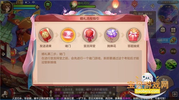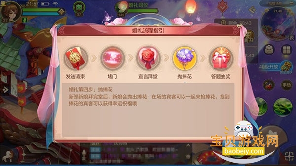 需要说明的是,花轿巡游阶段是可以跳过的,也就是说玩家订婚之后,可以选择不进行巡游,而直接开启婚礼,开启婚礼需要满足亲密度2000的要求,一般玩家达到36级左右的时候,系统赠送的花束加起来应该正好可以满足2000亲密度。