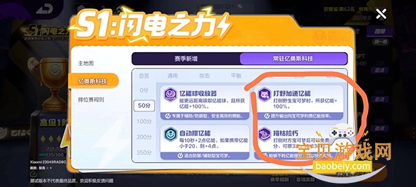 摧枯拉朽>打野加速亿能摧枯拉朽能让你在击败对手后按照你当前的亿能免费投一次(如果你有50分,当你击败对方后投分,投50分后你还有50分,可以叠加3次)!