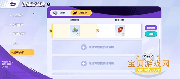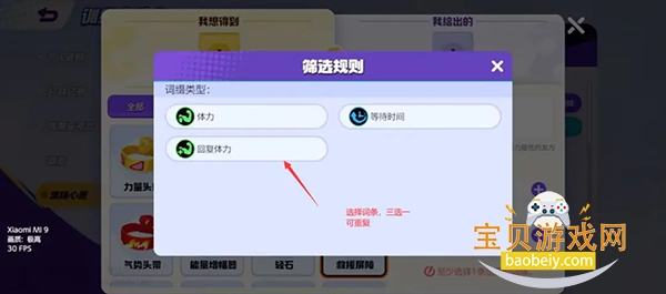 首先是词条界面,在持有物右下角进行点选,这里是有三个选项供你选择的,训练家们可以自由的进行三选一,但要注意第三个词条是随机刷新的,所以训练家可要好好甄别,别选错了,不然发布以后词条锁定就只能下架或者重新编辑很浪费时间的。
