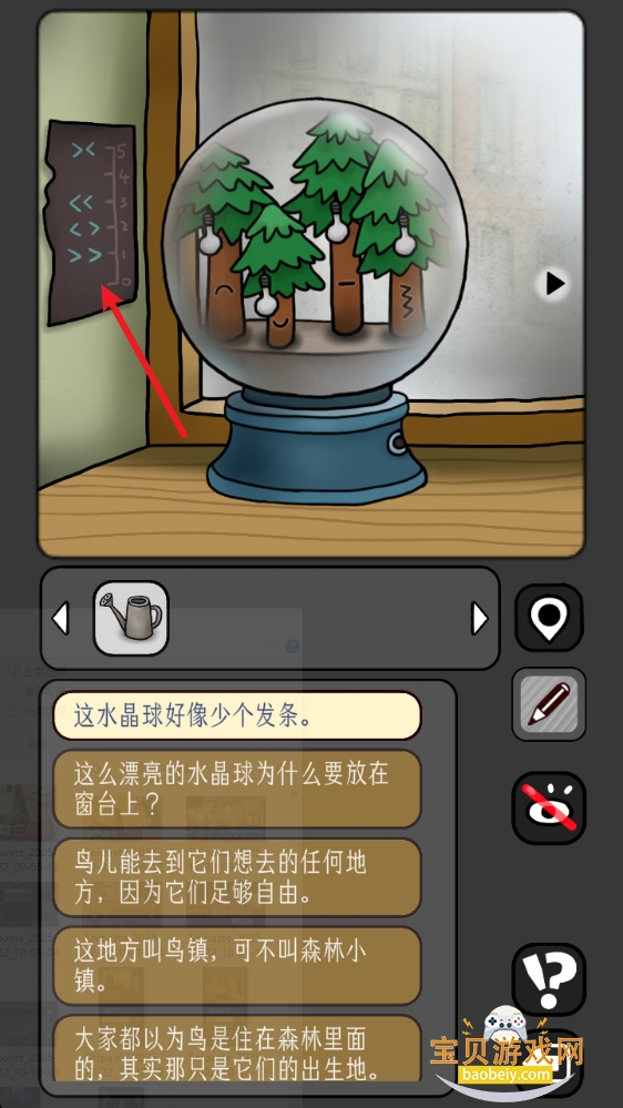 12、点击窗台上的水晶球,装上【发条】,获得线索