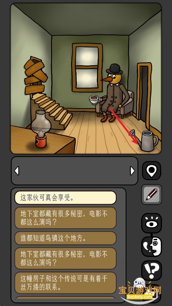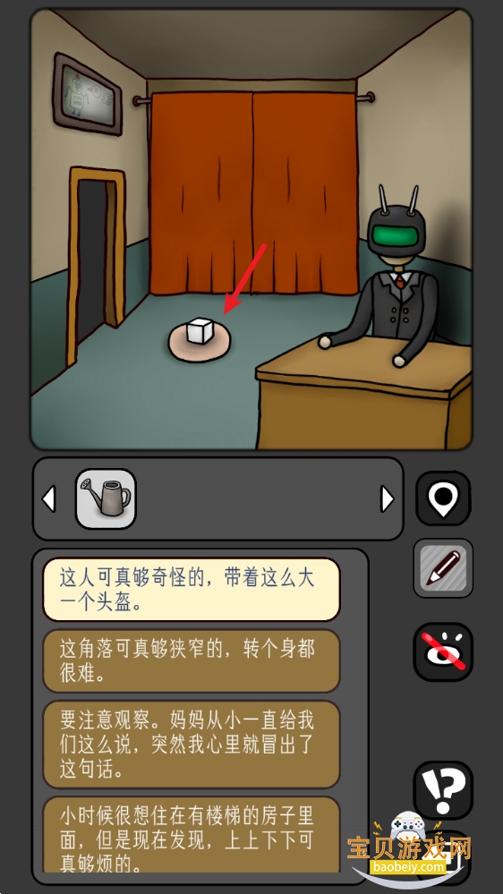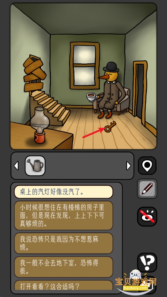 5、回到拿水壶的房间,把【糖块】放进咖啡,拾取地上的【钥匙】。