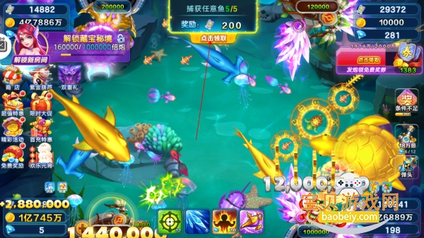 4、捕鱼进程完成到一定数额的时候,可以解锁新的房间。