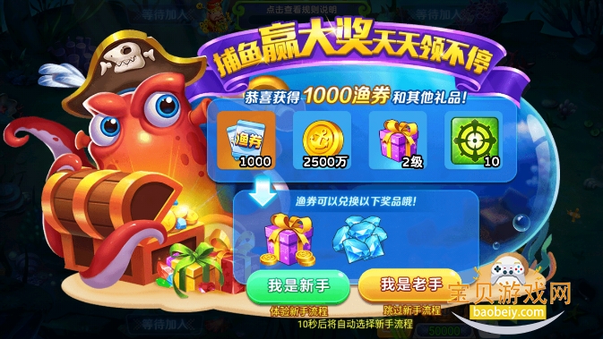 1、完成新手教程可以获得鱼券,如果玩家是一名新手,进入游戏后会有新手教程,顺利完成既可领取1000鱼券